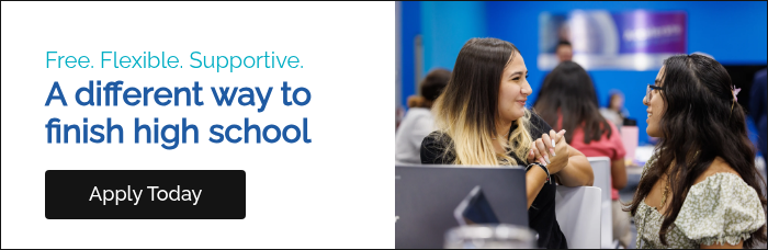 Rather than crowded hallways and rows of desks, Layla found comfortable, cafe style seating and a relaxed but studious vibe. She didn’t have to raise her hand to leave the classroom to grab a snack or use the bathroom. And as she succeeded in course after course, she regained confidence in herself as a learner.